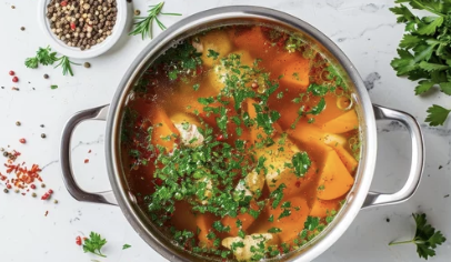 아플 때는 따뜻한 국물이 최고다. 특히 닭고기 수프는 단백질, 아미노산, 미네랄이 풍부해서 체력 회복에 좋다. 연구에 따르면 닭고기 수프는 감염과 싸우는 백혈구 활동을 도와준다.