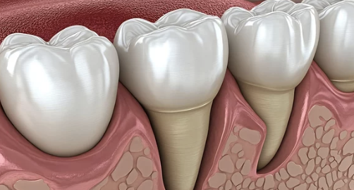 | 치주염 | 염증으로 인해 잇몸 조직과 뼈가 파괴되며 잇몸이 내려앉음 |